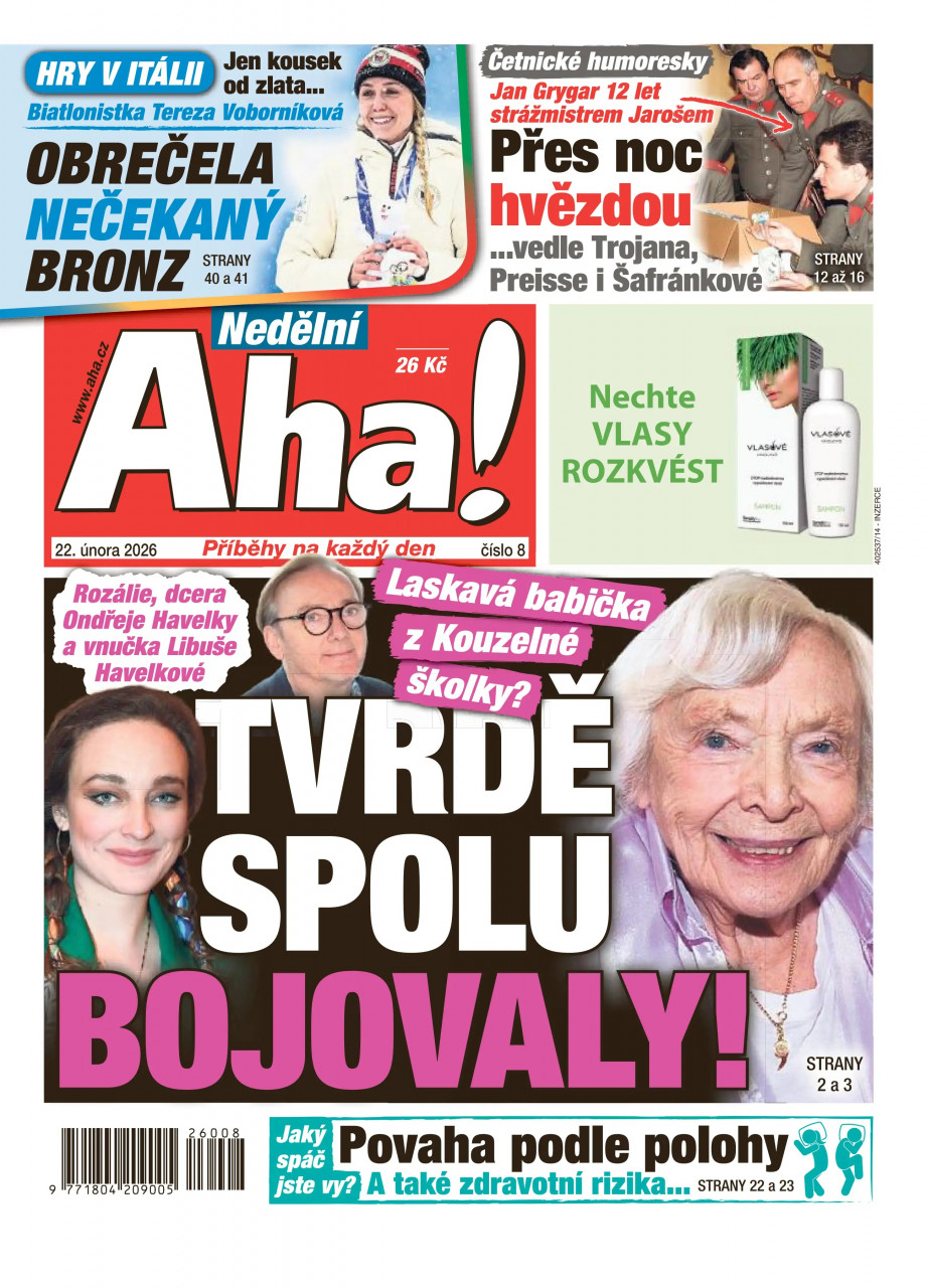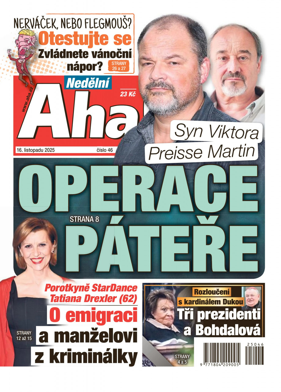 Nedělní Aha! vydává vydavatelství CZECH NEWS CENTER a.s., které je nejsilnějším mediálním domem na českém trhu a v současné době oslovuje téměř šest miliónů čtenářů. Toto vydavatelství vám pravidelně přináší také časopis Reflex, ABC, Sport, noviny Blesk a další.